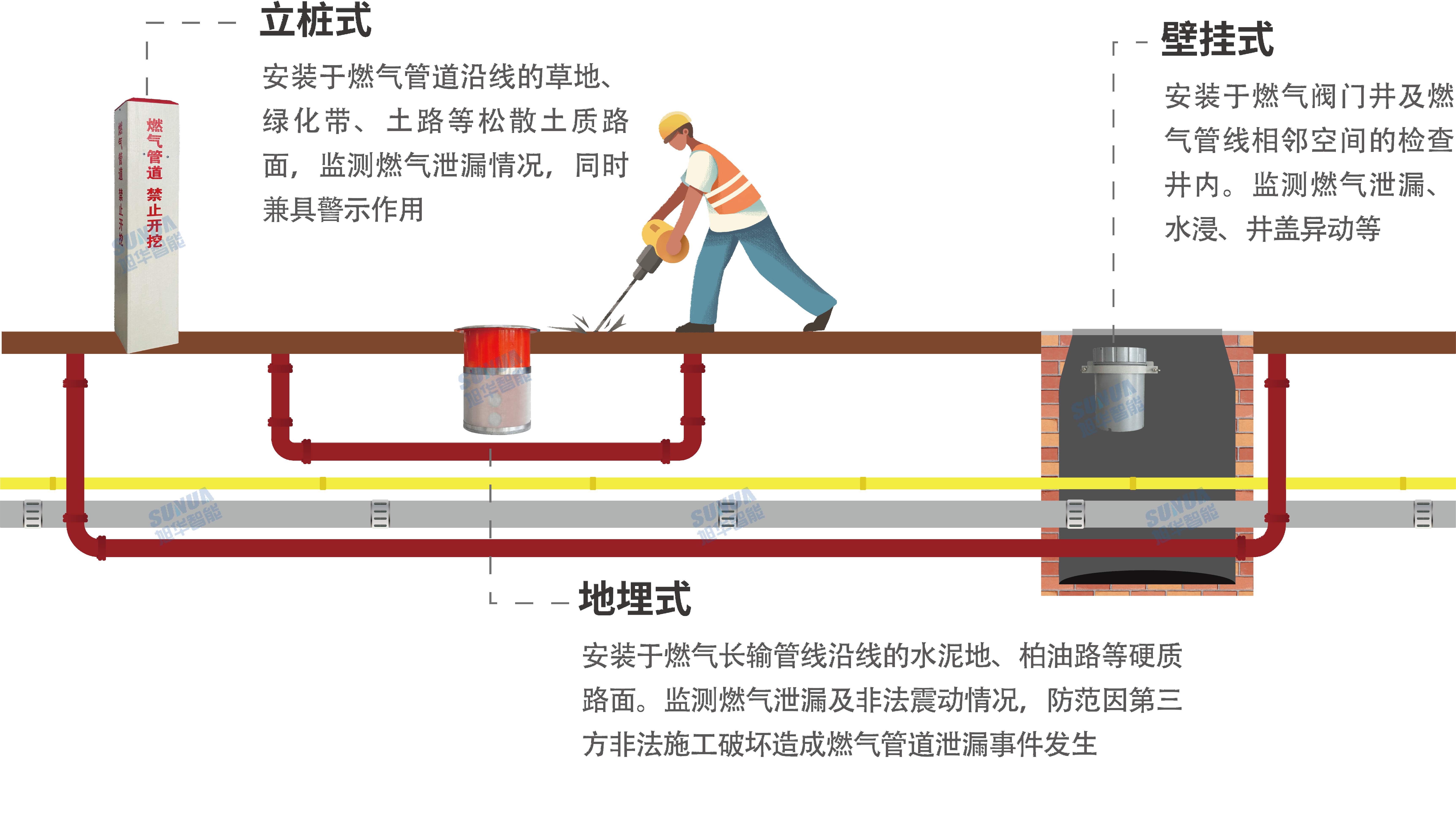 基于物联网技术,将燃气管网及其附属设施基础信息、管网检漏设备、施工信息与巡检员紧密结合,对燃气管网及其相邻地下空间可燃气体浓度、压力等进行实时监测,实现对区域内燃气管线泄漏的快速感知,为泄漏溯源分析、可燃气体扩散范围分析给予数据支撑,预防燃气安全事故发生,提升城市生命线的安全风险管控能力。